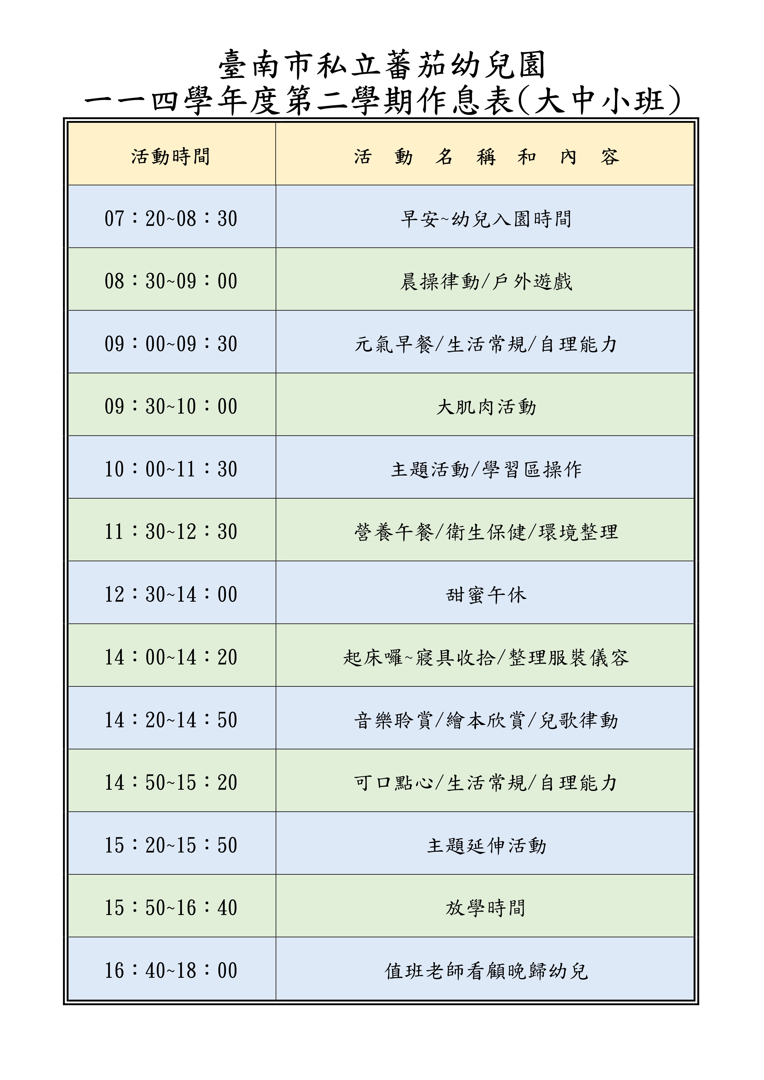 114學年度第二學期作息表