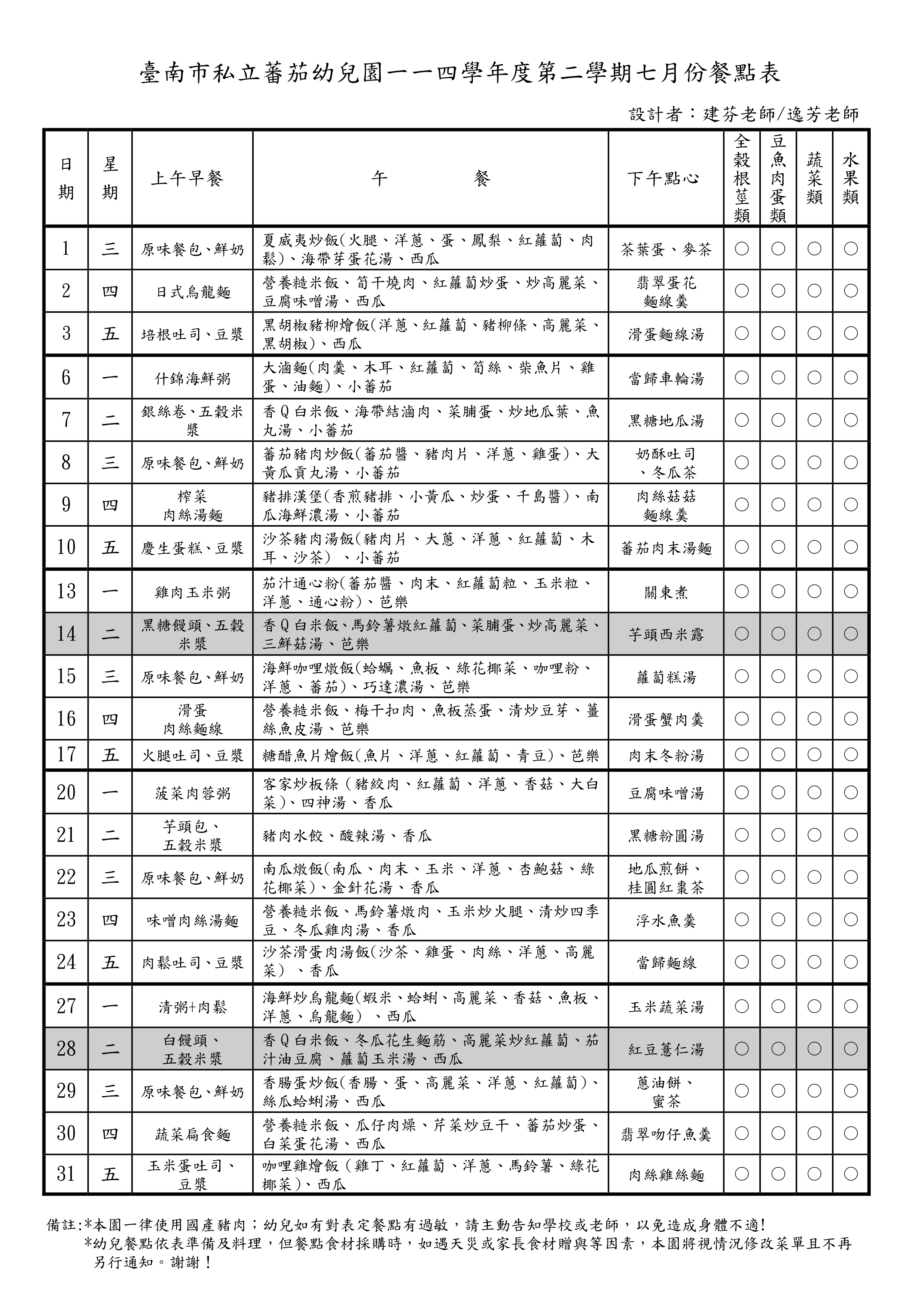 114下-7月份餐點表