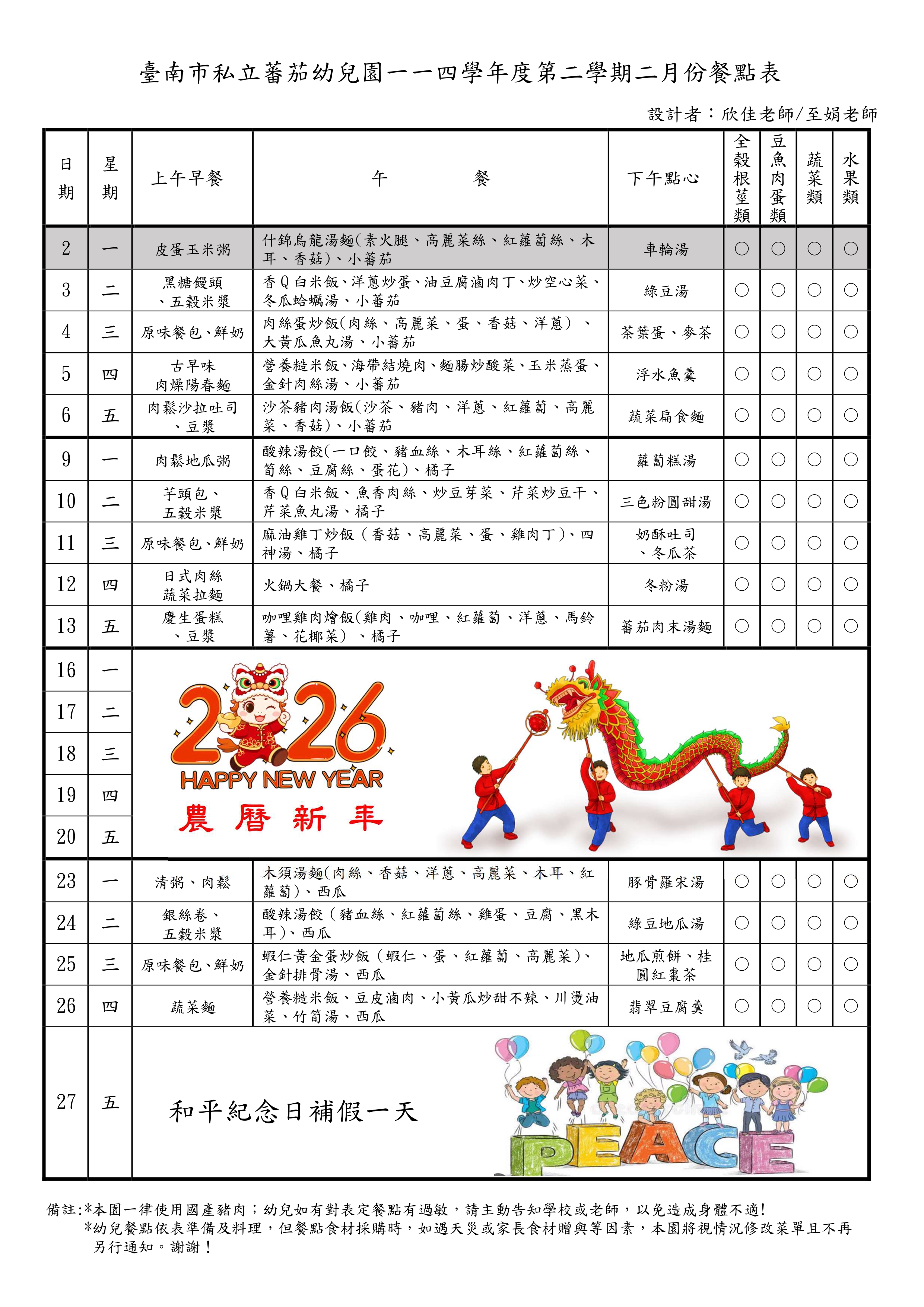 114下-2月份餐點表